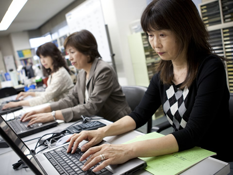 もっとも、最近ではコンピュータ用の会計ソフトウェアが充実しているので、そうした会計ソフトを利用してご自分で帳簿のデータをコンピュータに入力するお客様もたくさんいらっしゃいます。従って、この業務はコンピュータの扱いが不得手な方に対するサービスです。当事務所にはベテラン入力担当者がいて、専門に帳簿入力を行っています。帳簿入力後は、お預かりした帳簿と共に、データから作成した月次決算書を担当者が業績を説明しながら、お客様にお返ししています。