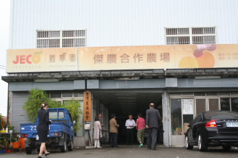 傑農合作農場は、この地域に住み、一貫理想を保有している農民を結集して、生産技術の向上と収益を高めることを目的として設立されました。また、国際貿易自由化の波に対応するため、農家企業化経営を実施し、流通経路の多角化を図り、国際化へ邁進しています。 最近では、各方面の流通や設備を通じ、その他の地区で農産物生産に従事している農民団体と相互協力して、産地策略聯盟を構成し、国内農産物流通システムの確立を目指しており、山梨から梨を青森からりんごを輸入しています。また、1995年、会員の要望で日本から高品質の梨穂木を輸入し始めました。 現在の穂木輸入先は福岡、鳥取、新潟、長野、福島などだそうです。輸出は主に、夏はマンゴー、冬はポンカン、ブドウなどですが、最近はドラゴンフルーツやパイナップルの輸出が増えたそうです。1983年より検疫が必要になり、虫がフルーツの中に卵を産んでしまうので、フルーツによっては殺虫処理が必要になりました。検疫は、台湾と日本の検疫官両者がチェックします。