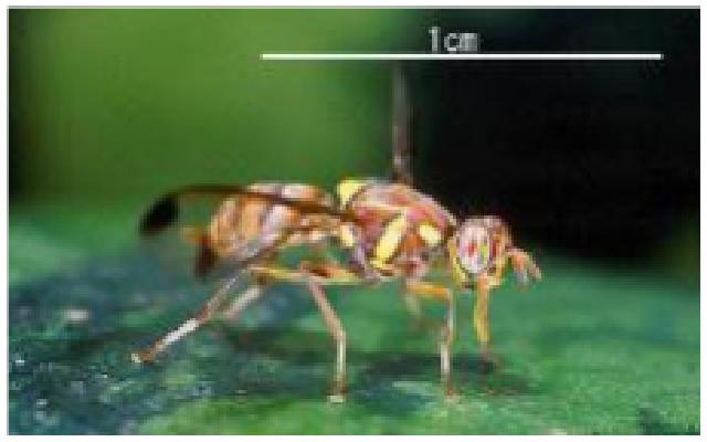アフリカマイマイ。体長、殻高10cm(成貝)。熱帯・亜熱帯地方に分布している大型のカタツムリで、日本では小笠原諸島(東京都)と奄美群島(鹿児島県)以南の南西諸島で発見が確認されています。野菜類をはじめ多くの農作物を食害し、著しい被害を与える農業害虫です。 先程ご紹介した視察先でも、果物を輸出している方がいましたが、マンゴー・パパイヤといったような熱帯地域の果物を他国へ輸出する際には、各国の厳重な植物検疫検査を行わなければいけません。なぜこういったものが持ち込みの規制になるかというと、東南アジアには“ミカンコバエ”や“ウリミバエ”という日本にはいない害虫がいて、それらは果物内部に卵を産み繁殖する性質があり、もし検疫を抜け国内に侵入してしまったら、我が国の農作物に大きな被害を与える恐れがある為です。そのためマンゴー・パパイヤなどを熱帯地域から他国の未発生地域に持ち込む際にウリミバエ・ミカンコミバエなどの発生がない事を厳しく検査する事が義務付けられています。 例外的に、パイナップル、ドリアン、ココナッツなどの果物は、果物の中へ卵を産まない為、持ち込みが可能であり、台湾での輸出検疫が必要ではありません。しかし、入国時の税関検査の前に輸入検査を受ける必要があります。空港・港の植物検疫カウンターで検査を受けて合格すれば持ち込む事が可能です。